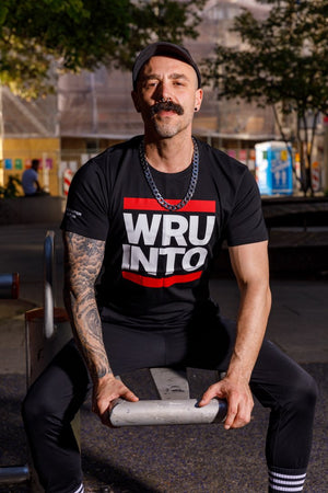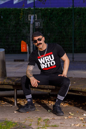 Auf der Brust fett und bold der Slogan von recon WRU INTO. What are you into? Auf dem Rücken in Genickhöhe ist unser Sk8erboy® X recon Logo in den geilen Farben weiß und rot angebracht.