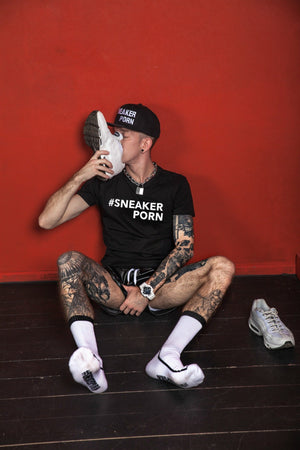 Im klassischen weiß-schwarz passen diese Socken zu all deinen Klamotten und Sneaker. Ob ein chilliger Abend mit Freunden oder die nächste Gay-Party. Die präsente Botschaft #SNEAKERPORN zeigt den Jungs was Sache ist. Du stehst ganz klar auf fette Sneaker und bist absolut im Trend. Damit setzt du ein klares Zeichen welchen scharfen Themen du bei socialen Medien wie Instagram und Facebook folgst. Ganz klar, voll im Trend!